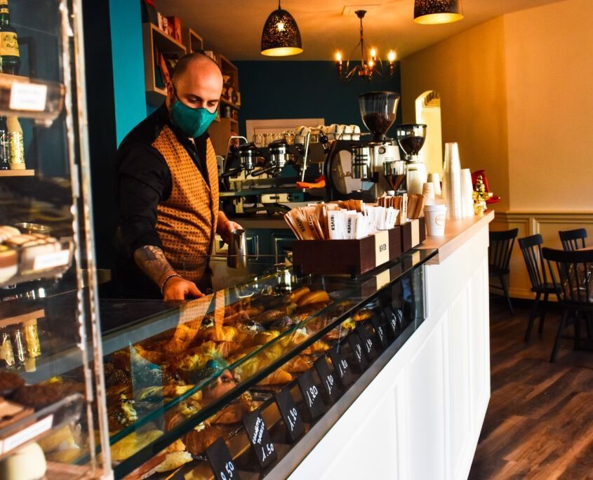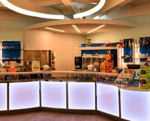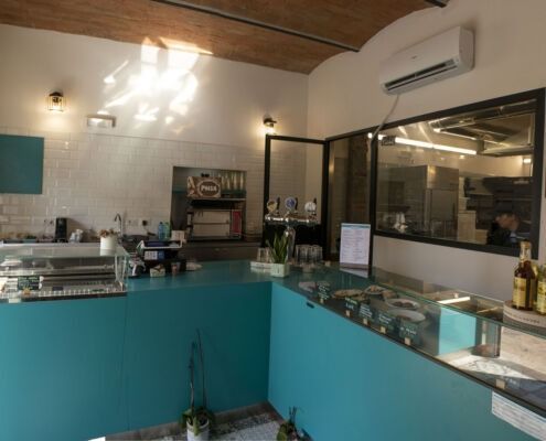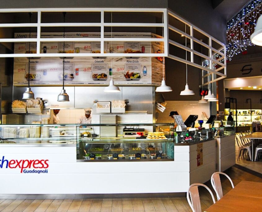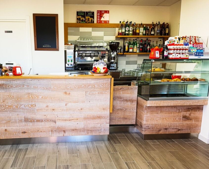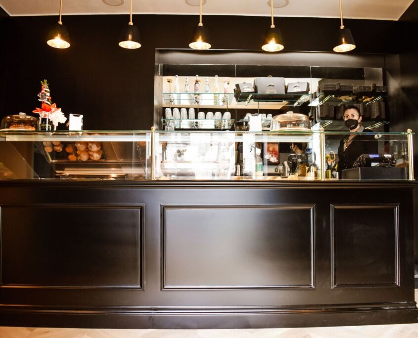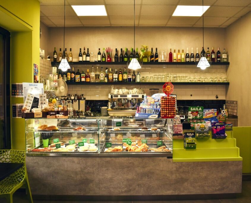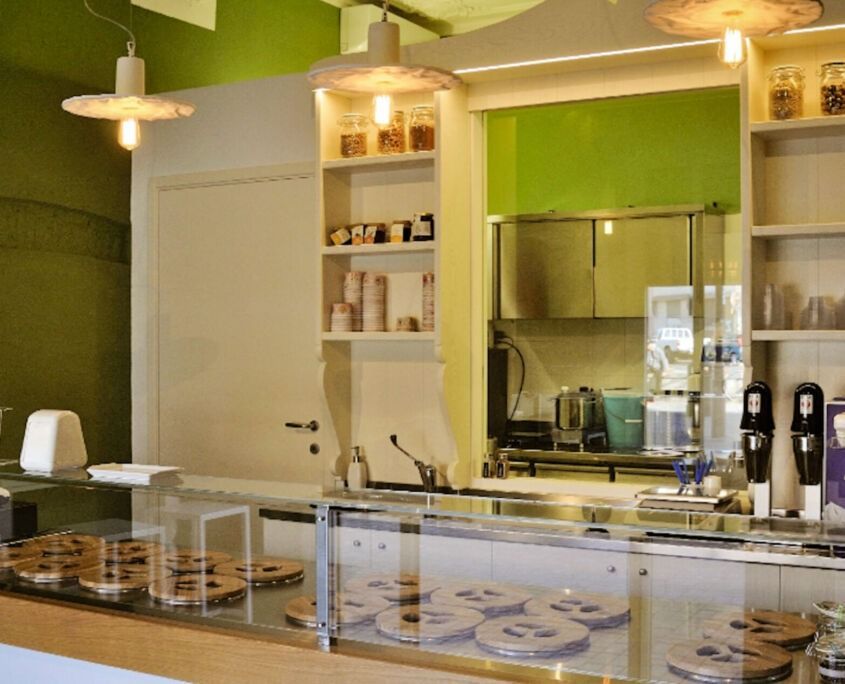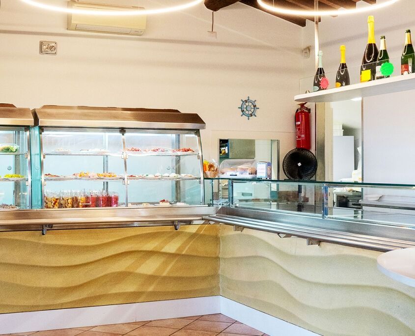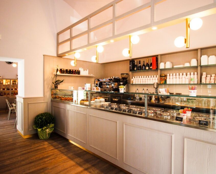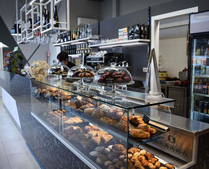 Banconi, retrobanchi, vetrine refrigerate, spazi operativi e zone di consumo studiate per ottimizzare i flussi di lavoro e creare un’atmosfera invitante, moderna e funzionale.
