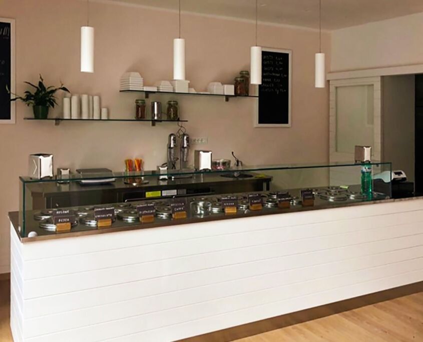 Progettiamo gelaterie moderne, funzionali e di grande impatto visivo, con vetrine professionali, retrobanchi e spazi ottimizzati.